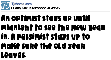 - # 201472 An optimist stays up until midnight to see the new year in. A pessimist stays up to make sure the old year leaves.