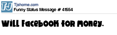- # 125495 If you are my friend on Facebook and you need money, don't ask because I have no money. If you are family, or a friend, may I borrow some money? If you are a female and cute, don't worry, I have lots of money $$$