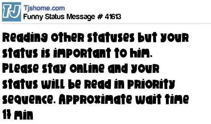 - # 44994 reading other statuses right now, but your status is important to me. Please stay online and your status will be read in the order it was received. Approximate wait time is 17 mins.