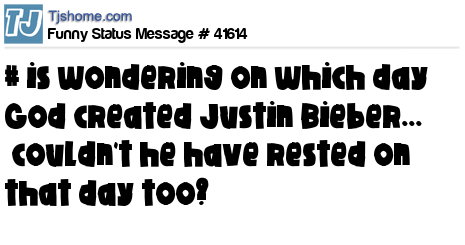 - # 32784 is wondering on which day God created Justin Bieber... couldn't he have rested on that day too?