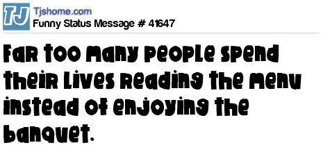 X Far too many people spend their lives reading the menu instead of enjoying the banquet.