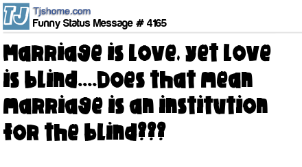 X Marriage is Love, yet love is blind....Does that mean marriage is an institution for the blind???