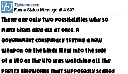 - # 41638 Did you read the news? 4,000 Dead Birds Drop From the Sky! Looks like God likes playing Angry Birds too!! Tee Hee!