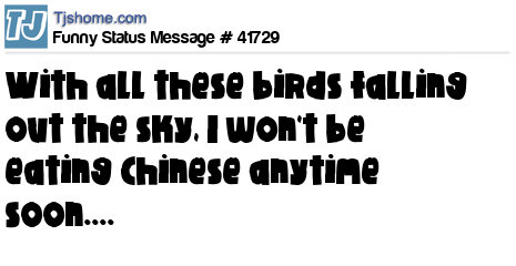X says With all these birds falling out the sky, I won't be eating Chinese anytime soon....