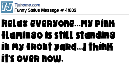 X is Relax everyone...My pink flamingo is still standing in my front yard...I think it's over now.