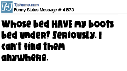X Whose bed HAVE my boots bed under? Seriously, I can't find them anywhere.