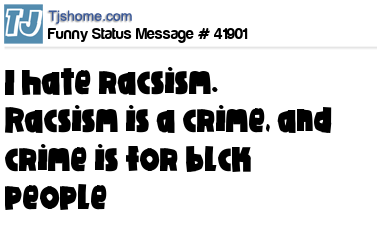 - # 130543 I'm not a ra*cist,,,,ra*cism is a crime and crime is only for blacks.