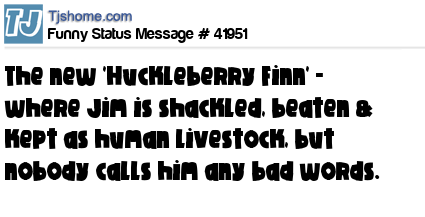 X The new 'Huckleberry Finn' - where Jim is shackled, beaten & kept as human livestock, but nobody calls him any bad words.