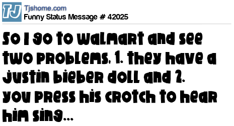 X so I go to walmart and see two problems, 1. they have a justin bieber doll and 2. you press his crotch to hear him sing...