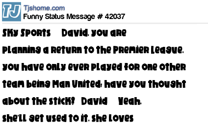 X Sky Sports – “David, you are planning a return to the Premier League, you have only ever played for one other team being Man United; have you thought about the stick?” David – “Yeah, she'll get used to it, she loves London.”