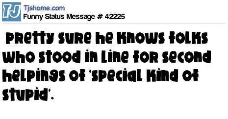 - # 73398 pretty sure he knows people who stood in line for a second helping of "a special kind of stupid."