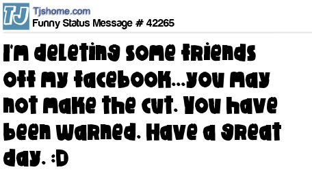 X is I'm deleting some friends off my facebook...you may not make the cut. You have been warned. Have a great day. :D