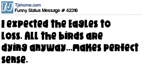 X is I expected the Eagles to loss. All the birds are dying anyway...makes perfect sense.