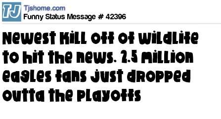 X says newest kill off of wildlife to hit the news. 2.5 million eagles fans just dropped outta the playoffs
