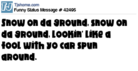 - # 14659 Snow on da ground.... Snow on da ground... drivin' like a fool when there's snow on da ground....look at ya now... car spinning 'round.... drivin' like a fool when there's snow on da ground...