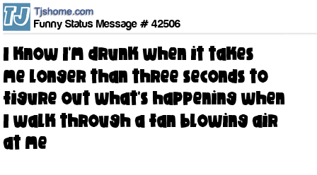 X is I know I'm drunk when it takes me longer than three seconds to figure out what's happening when I walk through a fan blowing air at me