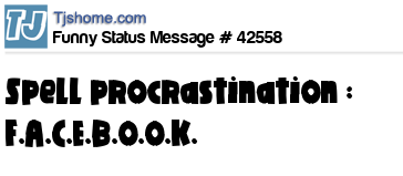 - # 36314 how do you spell procrastination? F-A-C-E-B-O-O-K...