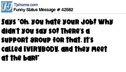 - # 59386 Oh you hate your job? Theres a support group for that, its called everybody. They meet at the bar.