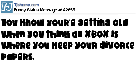 X You know your'e getting old when you think an XBOX is where you keep your divorce papers.