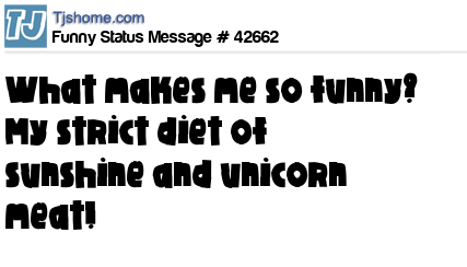 X says What makes me so funny? My strict diet of sunshine and unicorn meat!