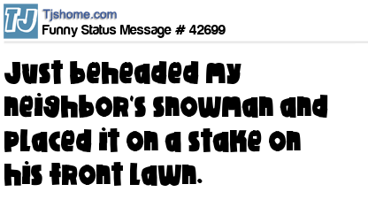- # 38905 Just beheaded my neighbor's snowman and placed it on a stake on his front lawn.