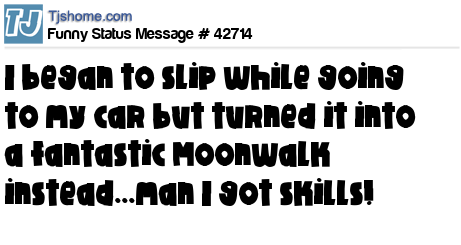 - # 40056 I began to slip this morning while going to my car but turned it into a fantastic Moonwalk instead. I got skillz!