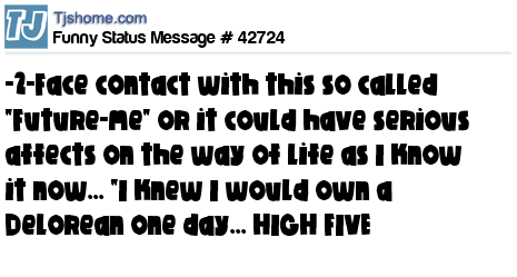 X is -2-Face contact with this so called "Future-me" or it could have serious affects on the way of life as I know it now... "I knew I would own a Delorean one day... HIGH FIVE
