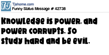 X Knowledge is power, and power corrupts. So study hard and be evil.