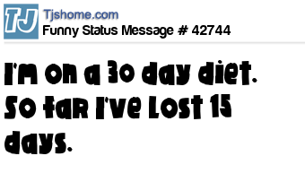 X I'm on a 30 day diet. So far I've lost 15 days.