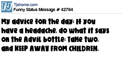 - # 37798 Advice for the day: If you have a headache, do what it says on the aspirin bottle: Take two, and KEEP AWAY FROM CHILDREN.