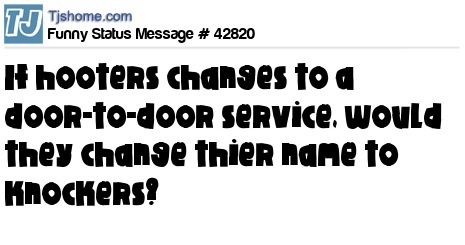 - # 7017 wondering..If Hooters were to become a door-to-door service would they have to change their name to Knockers?