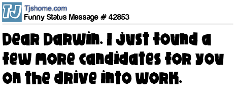 - # 20684 Its amazing how many of Darwin's biggest obstacles are allowed the privelage to drive on our roadways in this day in age.