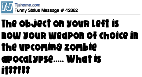 X The object on your left is now your weapon of choice in the upcoming zombie apocalypse..... What is it?????