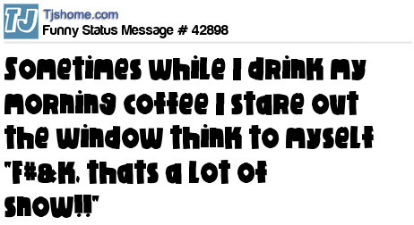 X is Sometimes while I drink my morning coffee I stare out the window think to myself "F#&k, thats a lot of snow!!"