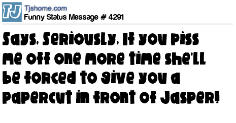 X says, Seriously, If you piss me off one more time she'll be forced to give you a papercut in front of Jasper!