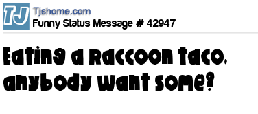 - # 195163 RACCOON: I'm being burglarized 911: can you describe him RACCOON: he's wearing a mask 911: maybe he's your RACCOON: nevermind, it’s my husband
