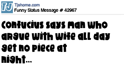 - # 186181 Confuciushe says: Man who fight with wife all day, gets no piece at night.