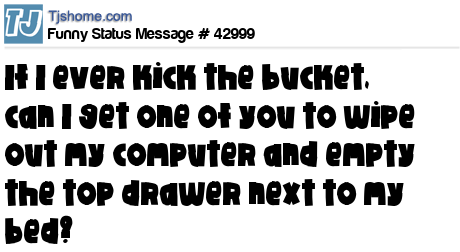 X  If I ever kick the bucket, can I get one of you to wipe out my computer and empty the top drawer next to my bed?