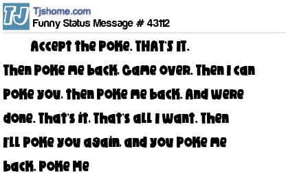 X  ♪♫♫♪Accept the Poke. THAT'S IT. Then Poke me back, Game over. Then I can Poke you, then Poke me back. And were done. That's it, That's all I want. Then I'll Poke you again, and you Poke me back. Poke Me Back♫♪♫♫♪♪♪♫♪♫