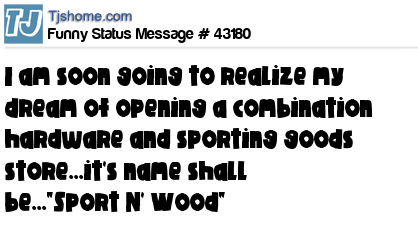 X I am soon going to realize my dream of opening a combination hardware and sporting goods store...it's name shall be..."Sport N' Wood"