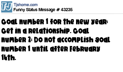 X Goal number 1 for the new year: Get in a relationship. Goal number 2: Do not accomplish goal number 1 until after February 14th.