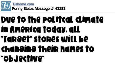 X Due to the politcal climate in America today, all "Target" stores will be changing their names to "Objective"