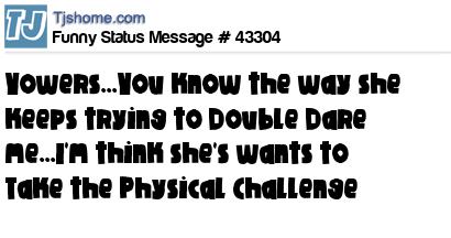 X  Yowers...You know the way she keeps trying to Double Dare me...I'm think she's wants to Take the Physical Challenge