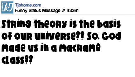 X is String theory is the basis of our universe?? So, God made us in a macramé class??