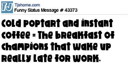 X is Cold poptart and instant coffee = The breakfast of champions that wake up really late for work.