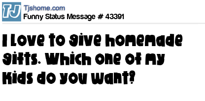 X is I love to give homemade gifts. Which one of my kids do you want?
