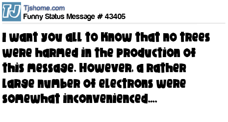 - # 3743 No trees were harmed in the posting of this Facebook status, but several million electrons were mildly inconvenienced.
