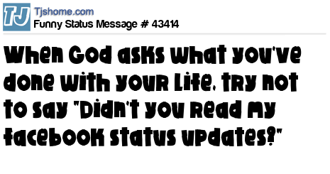 - # 93055 When you die and God asks what you did with your life, try not to say, "Didn't you read my tweets and Facebook updates?"