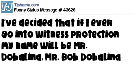 X says I've decided that if I ever go into witness protection my name will be Mr. Dobalina, Mr. Bob Dobalina