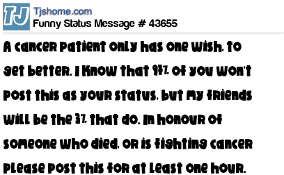 - # 48952 My uncle was diagnosed with terminal cancer last month, but all my Facebook friends changed their status' for an hour and now he's going to live a long and fruitful life.